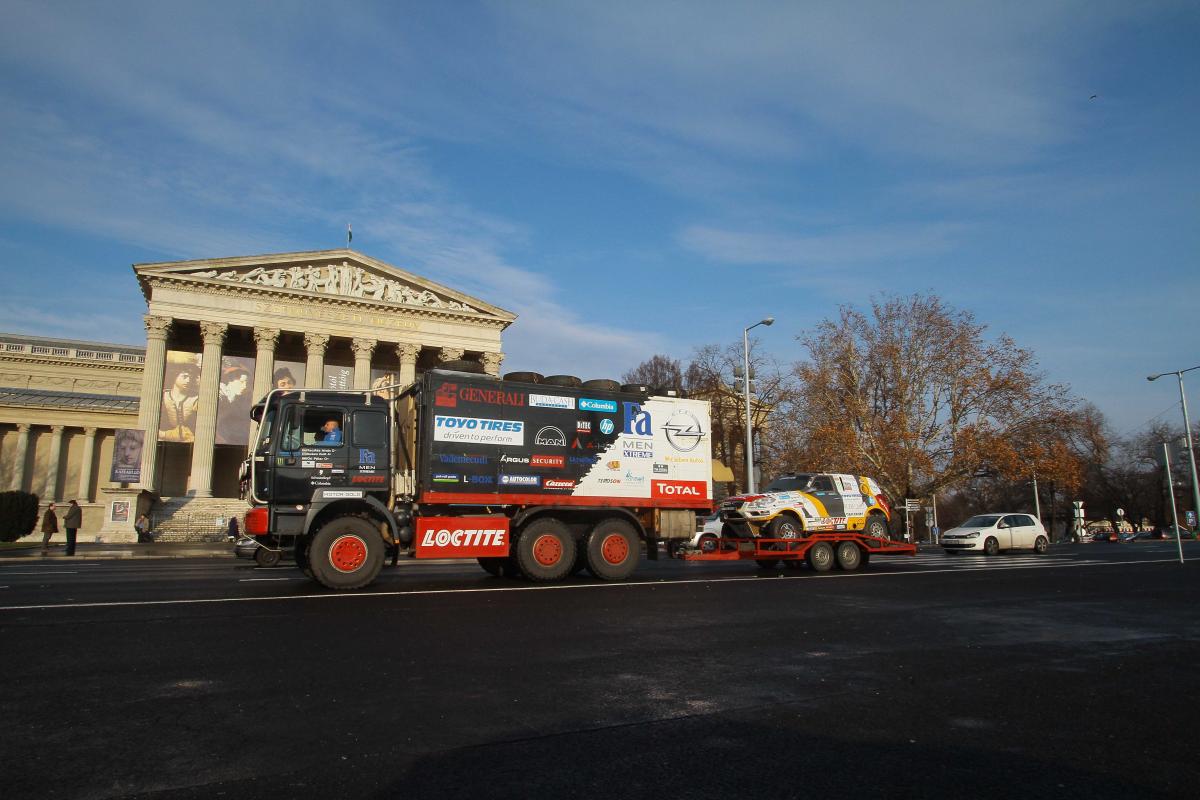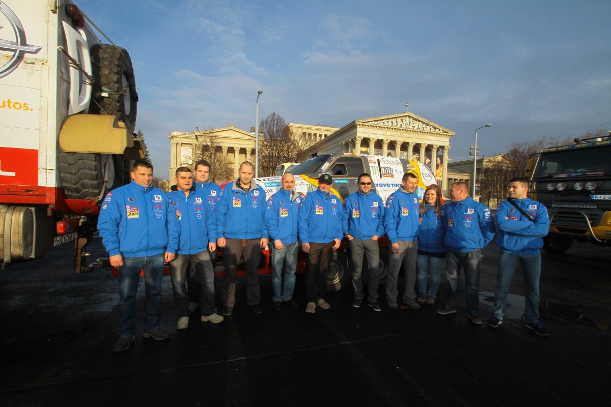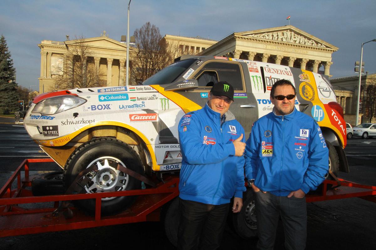 Ebben osztozik Szalayékkal a kamionos Kovács Miklós, Czeglédi Péter, Ács László trió, amely immár ötödször áll rajthoz a klasszikus Dakarok útvonalán haladó viadalon, és ugyancsak a Hõsök terérõl indult el Franciaország felé.