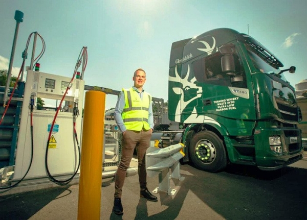 Gyorsan híre ment Skóciában annak a 44 tonna összsúlyú pótkocsis teherautónak, amelyet olyan üzemanyag hajt, ami a whisky-gyártás egyik melléktermékéből származik. Nem kocsmai maradékról van szó, hanem igazi ütős hajtóanyagról, mely közvetlenül a híres Glenfiddich finomító Speyside gyárából érkezik.