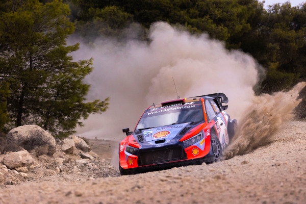 Sordo, aki a júniusi Szardínia-rali óta először szerepelt a Hyundai összeállításában, rövid időre átvette a vezetést. De, mint oly sok pilótát előtte, őt is legyőzték a görög útviszonyok. Egy sziklával való ütközés miatt a hátsó gumija kilyukadt, és a foszló abroncs teljesen lebontotta a Hyundai i20 jobb hátulját. A defekt körülbelül 50 másodpercébe került a spanyolnak, de többet vesztett volna, ha a pályán megáll kereket cserélni. Mivel lyukas lett a kocsi oldala, a bejutó por miatt a hátralévő időben síszemüvegben vezetett Sordo.