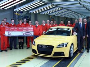 Az Audi Hungaria kettős jubileumot ünnepel: Győrben a mai napon legördült a 25 milliomodik motor és az 500 ezredik Audi TT a gyártósorról. Az autó, egy imolasárga Audi TTS Coupé competition, benne a jubileumi négyhengeres, 200 kW (272 LE) teljesítményű, 2,0 literes TFSI-benzinmotorral, a német...