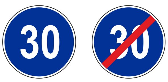 Bár nem sok helyen találkozni vele, létezik a „kötelező legkisebb sebesség” tábla, ami kör alakú, és kék háttéren fehér számmal mutatja, hogy az adott úton legalább a megjelölt sebességgel kell haladni – kivéve, ha az út- és látási viszonyok, a forgalom vagy az időjárás miatt ez veszélyes lenne.