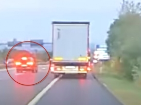 Nem mindennapi felvétel készült fedélzeti kamerával az M3-as autópályán egy agresszív autósról.