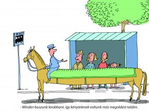 E heti rajzunk készítője Kelemen István, karikatúrájának címe: Ha lerobbannak a buszok.
