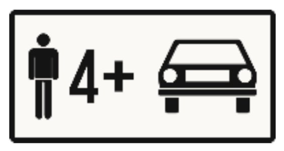 Az idehaza egyelőre teljesen ismeretlen „telekocsi” nevű kiegészítő tábla csak arra a járműre vonatkozik, amelyben a sofőrrel együtt legalább annyian ülnek, mint amennyit a jelzőtábla mutat. A KRESZ-tervezetben egy 4+-os változat látható, vagyis legalább négy embernek kell ülnie az autóban, de természetesen a jelzésnek lehet 2 vagy 3 személyre vonatkozó verziója is.